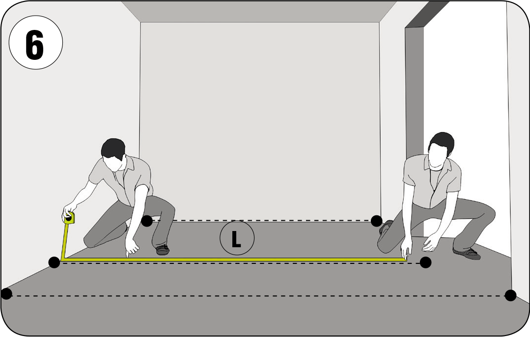 Замерьте длину помещения (L), как показано на рисунке. Запишите минимальное значение.
